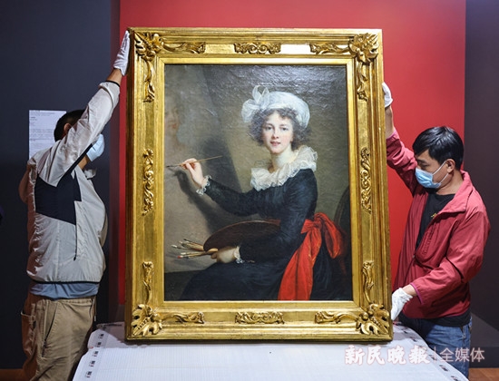 开箱作品中尺幅最大的是来自凡尔赛宫的画师路易丝·伊丽莎白·维吉·勒布伦的《自画像》。这位女画家创作此画时35岁。其时正值法国大革命,这位深受玛丽·安托瓦内特王后喜爱的肖像画家因担忧安全逃离家乡,而王后几年后被砍头。在这幅自画像中,她正在描绘王后的美丽容颜。女画家以18世纪传统的古典细腻技巧,描绘具有时代精神特征的肖像,具有新古典主义倾向。