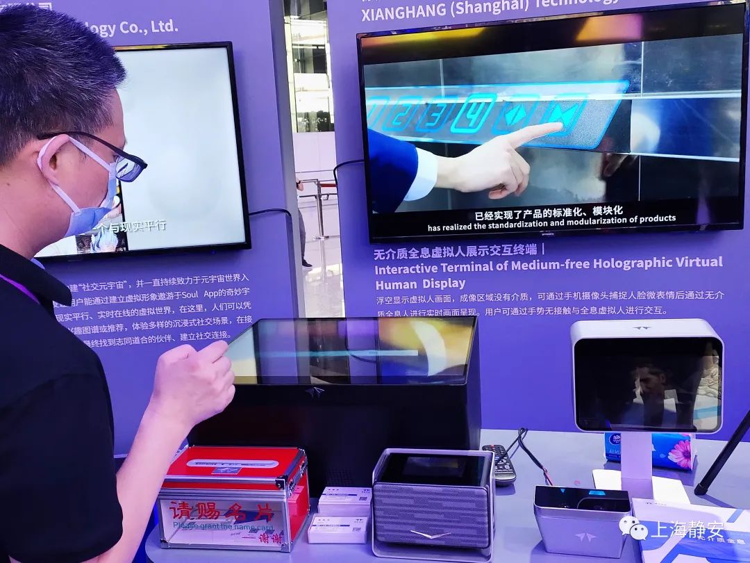 在位于上海世博中心的元宇宙展区,许多拥有元宇宙元素“黑科技”的企业,吸引世界各地众多观众前来观赏,其中市北高新园区的像航(上海)科技有限公司(简称“像航科技”)利用无介质全息技术研发的系列产品,展示了不用借助任何设备,点击“空气”即可完成触屏的神奇景象。