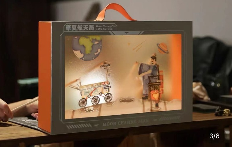 “节令商品关键是要与传统节日内涵联系。”陆女士希望月饼等节令商品不要只在包装上简单直接使用传统文化符号,“能让我们端出月饼时讲一点背后的故事。”她最终选择了一款“皮影戏”月饼,该月饼盒一面半透明,可改造成皮影戏舞台,角色除了宇航员、火箭、月球车,还有一个坐在椅子上的古人。这个角色是元末明初时试图飞向天空的万户,月球上一座环形山以他命名。“这样的包装不算过度,又能让孩子了解皮影戏和中国‘望月’‘奔月’的故事。”