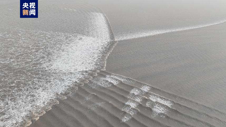 本次,科考队员们使用了10多架无人机,从上游到下游,发现和记录了多处较为罕见的潮景——鱼鳞潮,这也是记录中最大的成果。