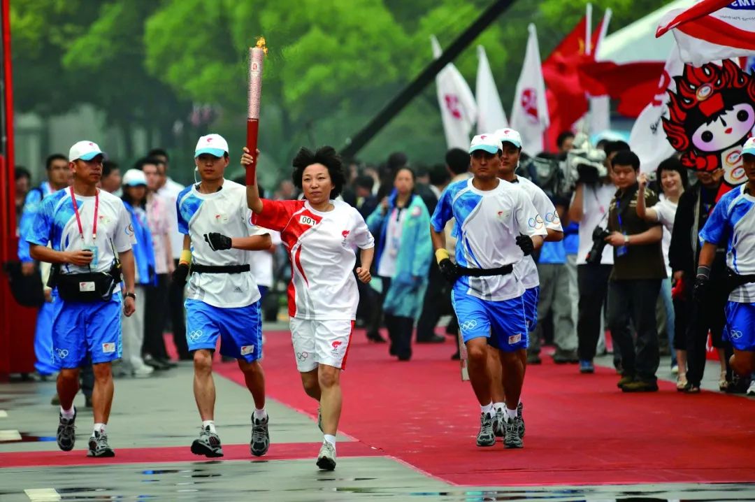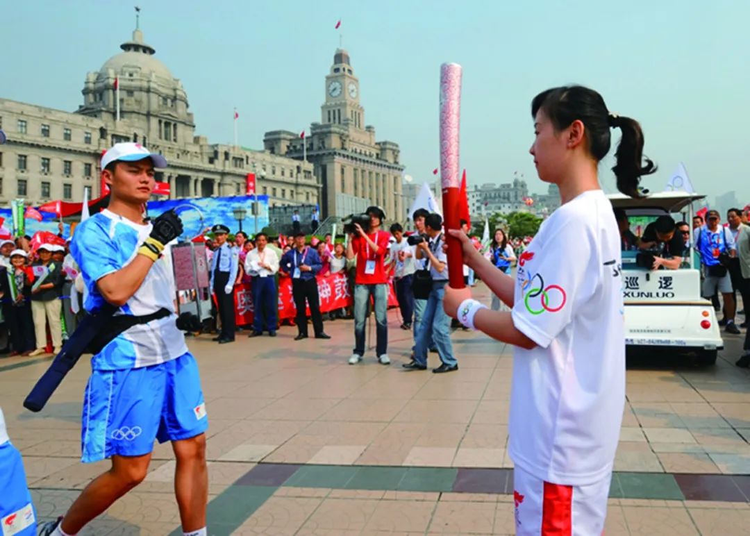 2008年5月23日—24日,奥运圣火在上海传递,奥运冠军庄泳成为上海站第一棒火炬手,世界足球小姐、亚特兰大奥运会银牌获得者孙雯担任第二日传递的首棒火炬手,孙雯高举火炬做了一个握拳的手势,她表示“那是一个为四川加油,为汶川加油的手势。”上海站传递的末棒火炬手是著名跳高运动员朱建华,他手持“祥云”奔跑进入嘉定汽车博览公园广场,通过近300米的红地毯到达舞台中央,用火炬点燃圣火盆。
