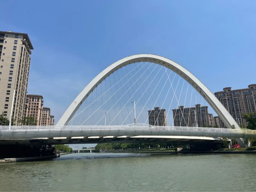 看过了两岸的风景,正前方是北水湾大桥,也就是嘉定市民俗称的“彩虹桥”,每当夜晚来临,这里便成为不少市民休闲观景的好去处。北水湾大桥横跨横沥河、贯通平城路,它的通车极大方便了横沥河东岸居民出行。