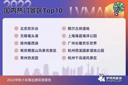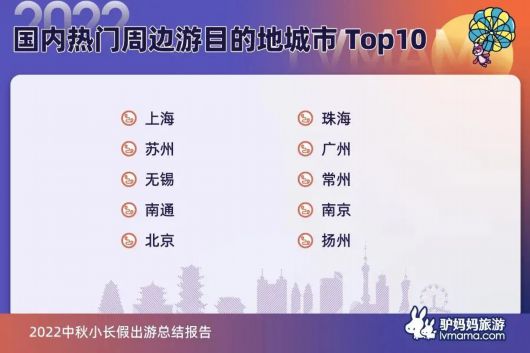 受疫情影响,本地游、周边游依旧是中秋出游的主流趋势,主题乐园、山水名胜、江河夜游景区人气最旺,城市微旅行、民俗活动、露营等体验项目受游客追捧。