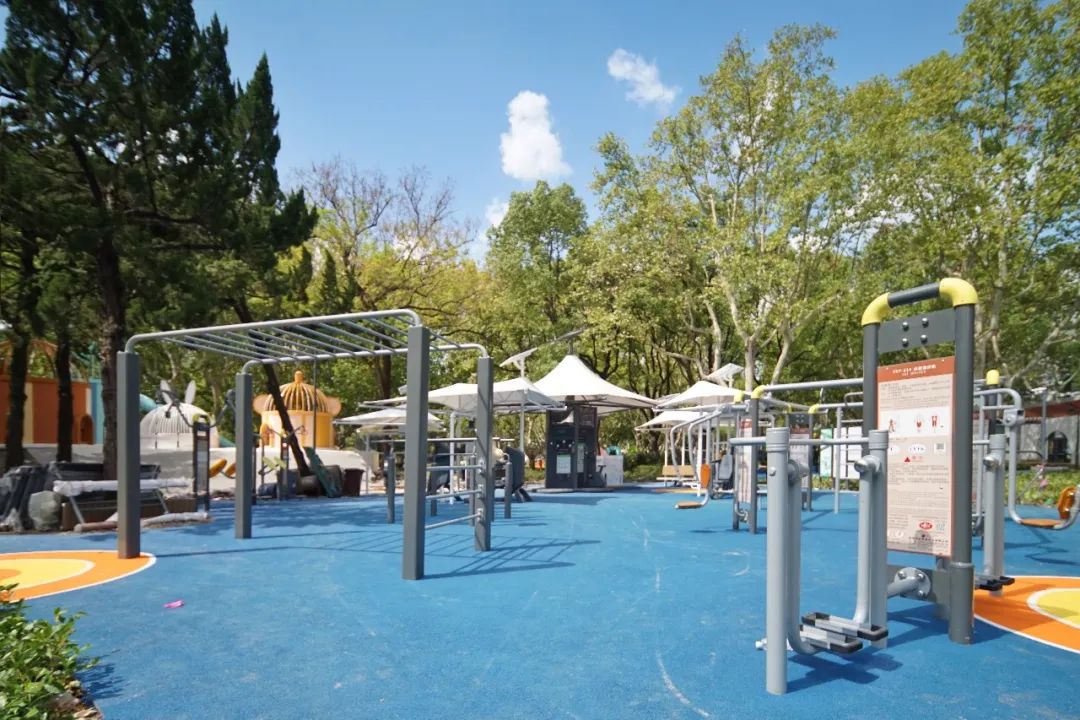 公园内还设置了可以满足全年龄段、不同人群体育健身需求的活动场所和健身器械,有一处占地400平方米的全国首套智能室外健身器械,使用者可以通过人脸识别技术、5G通讯技术自动从体测器材获取到体测报告和运动处方。沿主园路1.5公里的智能跑道,沿线设有多个运动采集智能设备,市民注册后可开启智能健身跑步新体验,获取运动排行榜、运动数据和科学指导。
