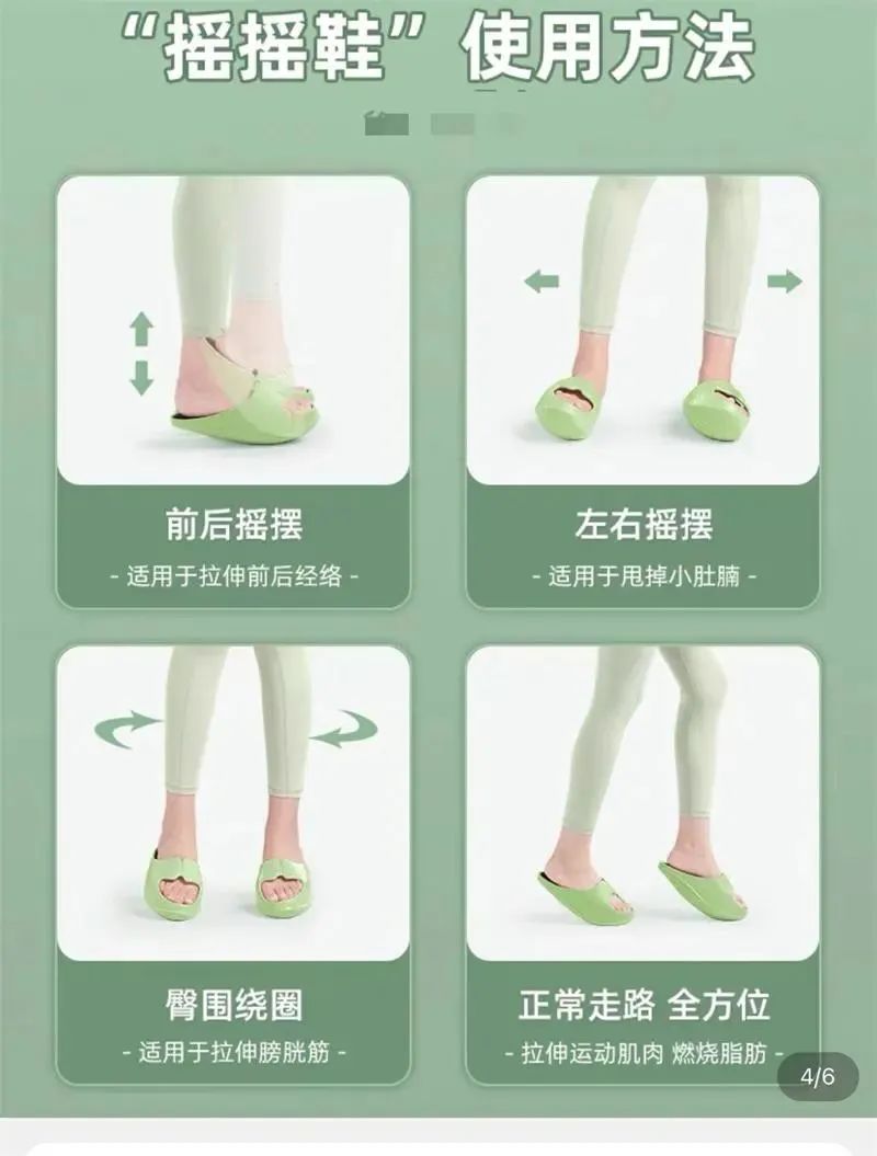 这款产品叫摇摇鞋,顾名思义,使用它的方法就是穿上去,下肢有规律地前后摆动。