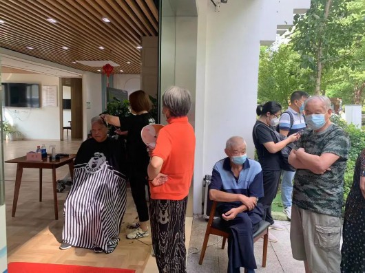 活动正式开始前,很多老年朋友早早地来到现场排队等候。人气最“旺”、队伍排得最长的还数爱心理发“摊位”。“最近天气还是有点热,把头发剪短一点,自己看着也清爽!”在理发师的修剪下,刚剪完头发的老人笑容满意。
