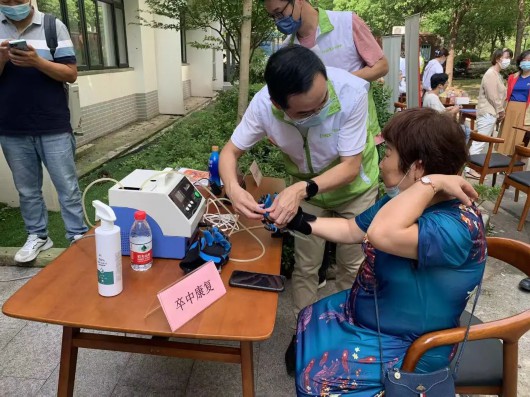 “前段时间,我有高血压都不敢去卫生院量,今天这场活动中就能现场量血压,实在太方便了。”在量血压摊位一位排队的居民开心地说道。