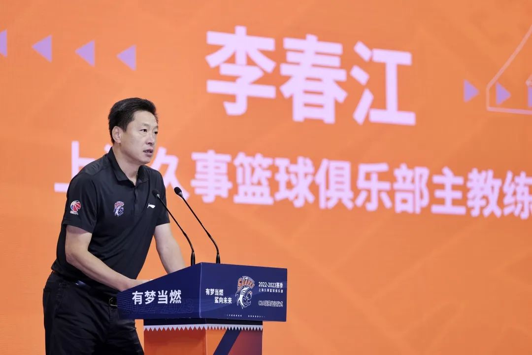 随后,上海久事集团党委委员、副总裁樊建林,代表上海久事集团对球队提出新赛季寄语。在大鲨鱼全队出征2022-2023赛季CBA联赛之际,他对球队提出了几点要求:葆谦虚进取,戒骄戒躁,实现赛季目标,力争新突破;磨炼新阵容,稳定战术体系,提升整体实力;在以老带新的同时,重点关注年轻球员发展。久事集团希望俱乐部在新赛季立足新起点、新目标、新阵容、新主场,践行建设一流俱乐部的理念。