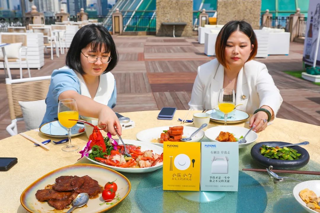 “公筷公勺,舌尖上的新风尚”“有剩余,带走我”,每张餐桌上,都会放置这两张文明创建公益广告,并配备一套公筷公勺。菜肴接连端上,每道菜也根据不同种类,在餐具内放置了一件公筷或公勺。菜品上的公筷,汤肴中的公勺,不时被客人取用。