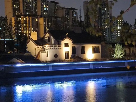 在手法上更为注重夜景整体性和一致性,以灯光为笔,以建筑为画卷,细细描绘古典建筑的形体之美,如同将沿河的古典建筑刻画成十七位冥想沉思的儒雅书生。