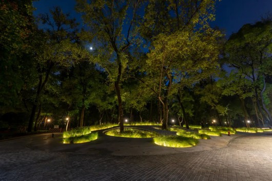 配合“风铃绿地”主题打造的“风铃草”景观灯具清新雅致,别具一格。白天犹如躲在绿丛中的花朵,晚上则成为星星点点的照明灯光,增加了绿地的艺术感染力与趣味性,营造了静谧优雅的光影氛围。