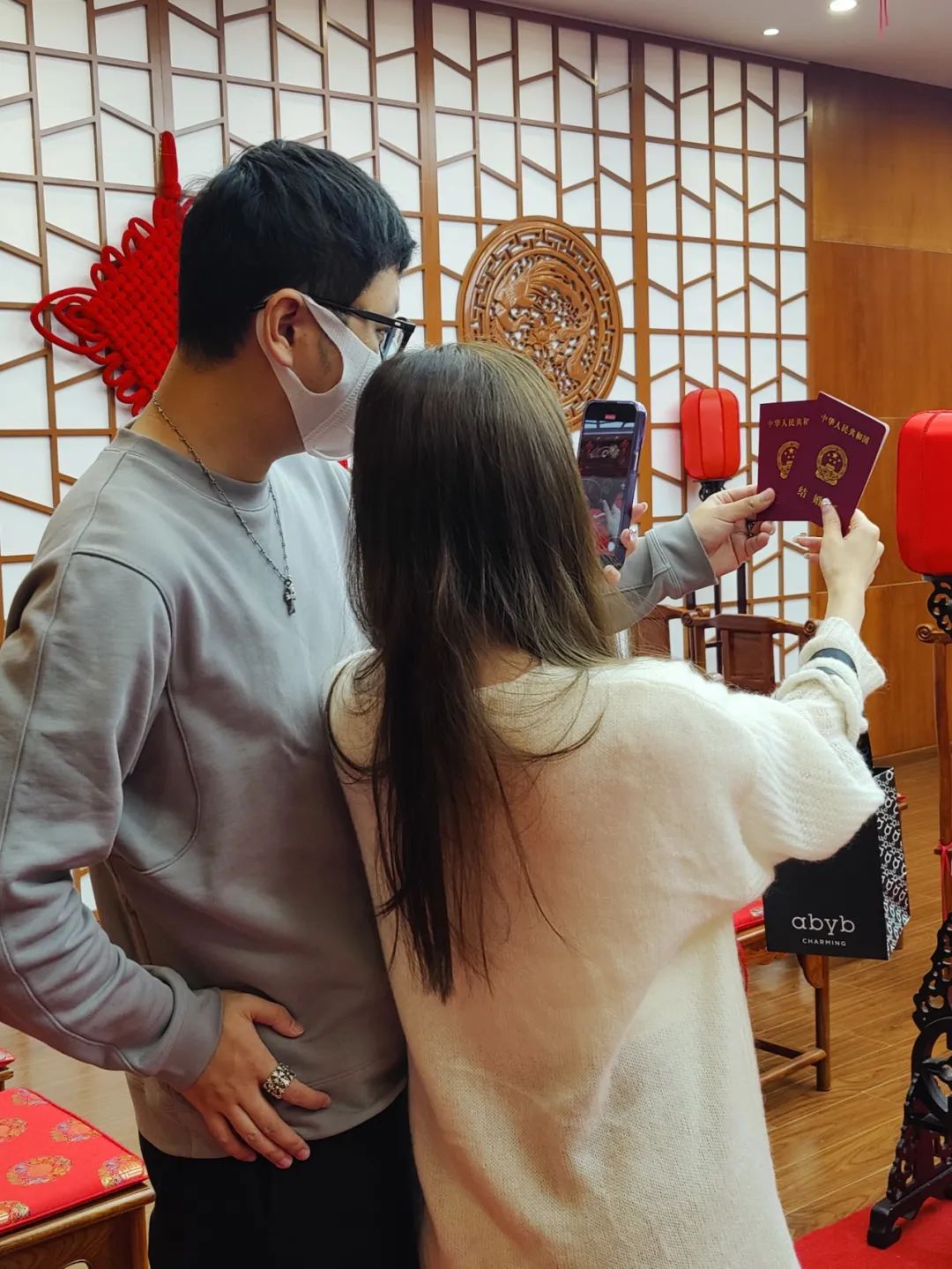 等到10点出头,“叫号”终于轮到了郭小姐和吴先生。“虽然多等了一会儿,不过还是很方便的,解决了人生大事。”拿到结婚证明,两人迫不及待地当场拍照“晒”朋友圈。