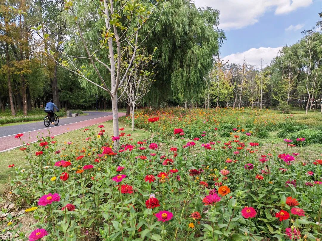 除了粉黛乱子草,市民还可以欣赏到开得正好的百日草、金鸡菊等花卉,在美好的秋日里,不用去郊区,在长宁就能体验到“绿野仙踪”的无穷妙趣。