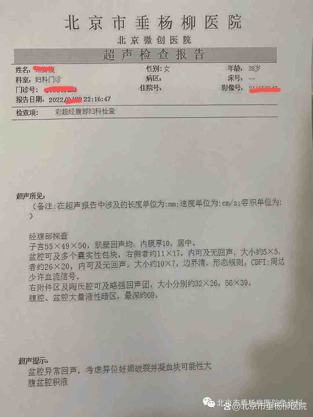▲患者超声检查报告