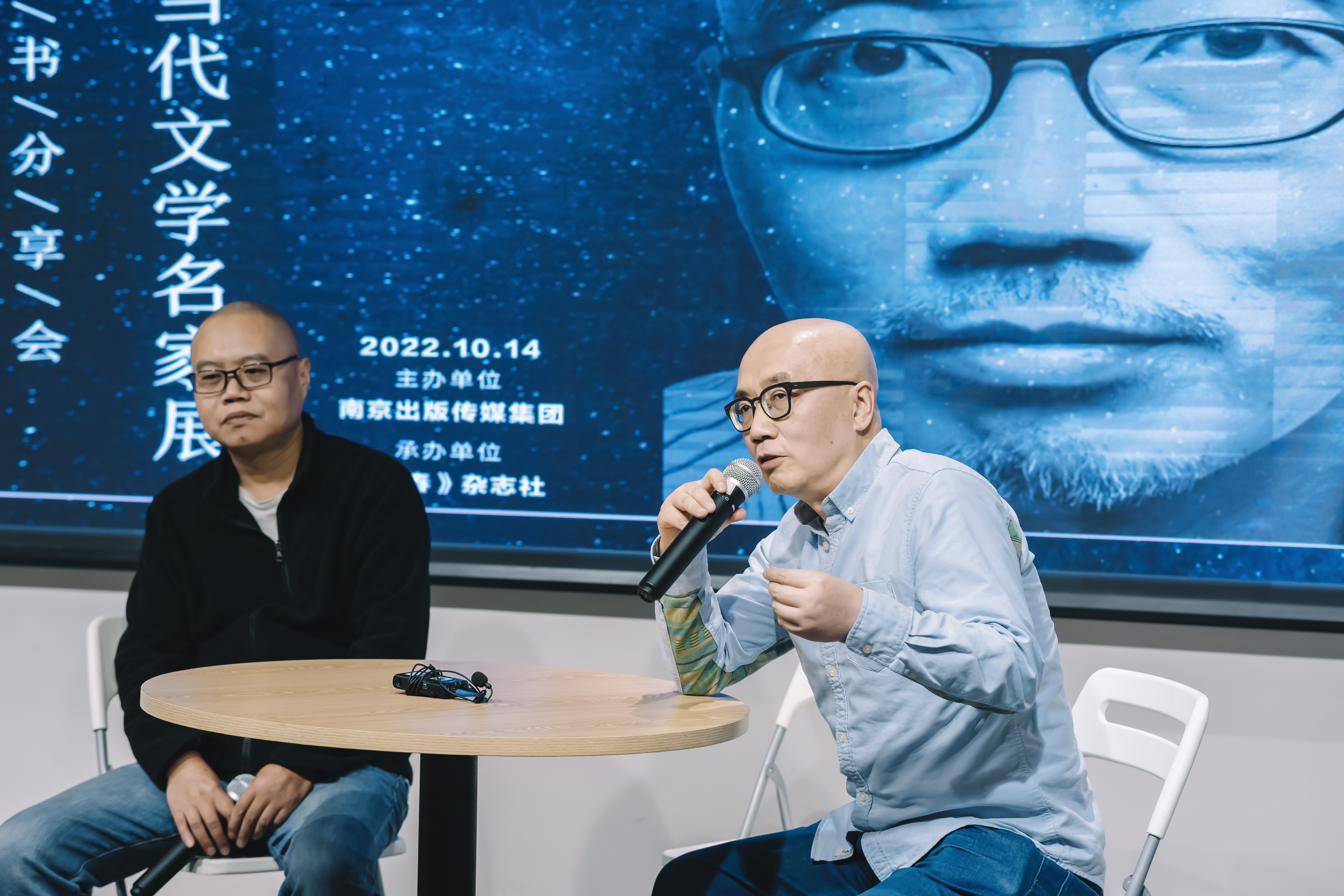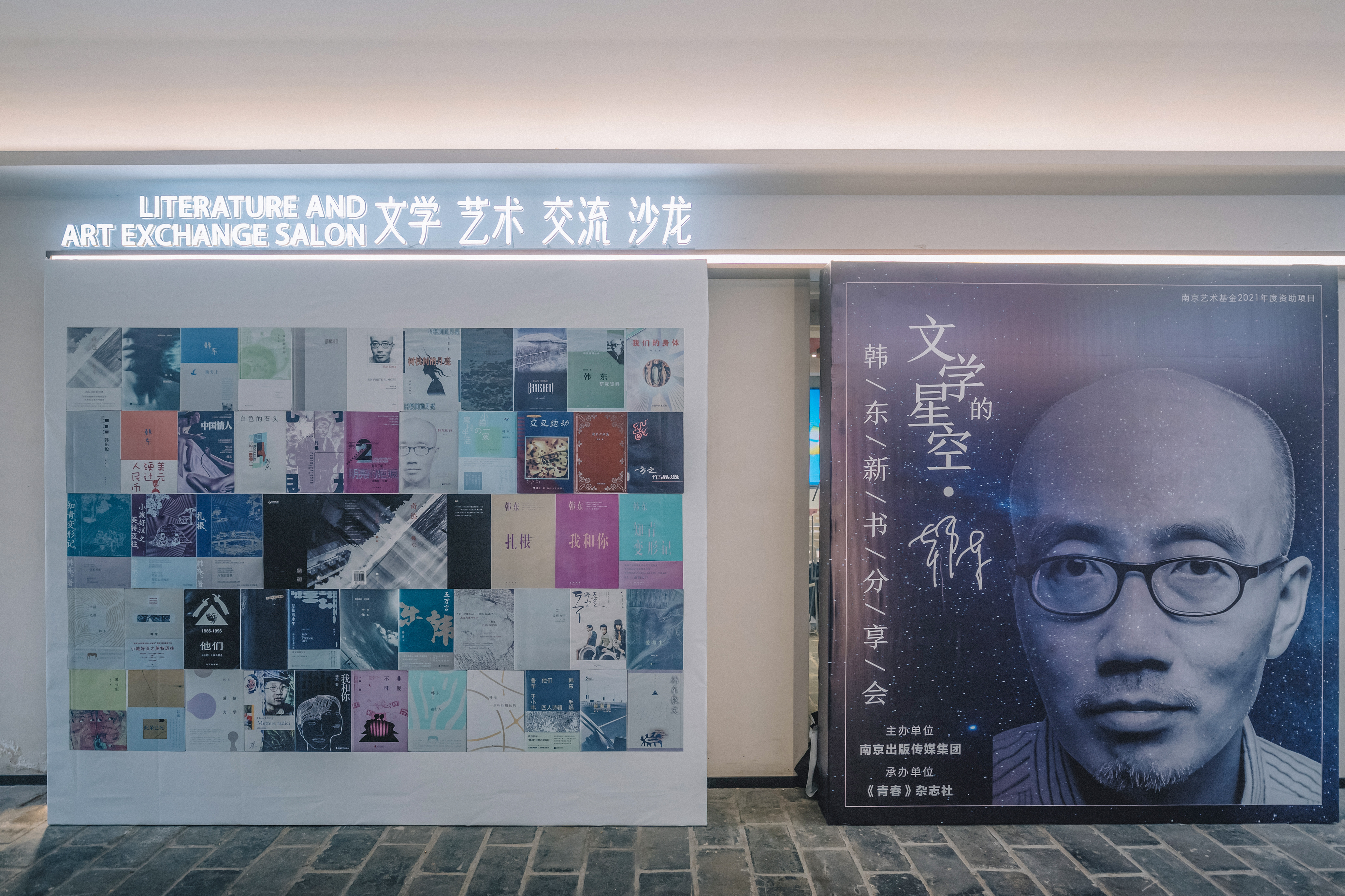 10月14日,“文学的星空——当代文学名家展暨韩东诗歌分享会”在南京开幕。这一次展览综合画作、书影、电影海报等元素,呼唤读者走进韩东创作的文学世界。 作家鲁敏,学者傅元峰,评论家何同彬,出版人、作家李黎,诗人、诗集《奇迹》策划人马铃薯兄弟也来到韩东诗歌分享会,与读者畅谈韩东的文学魅力。