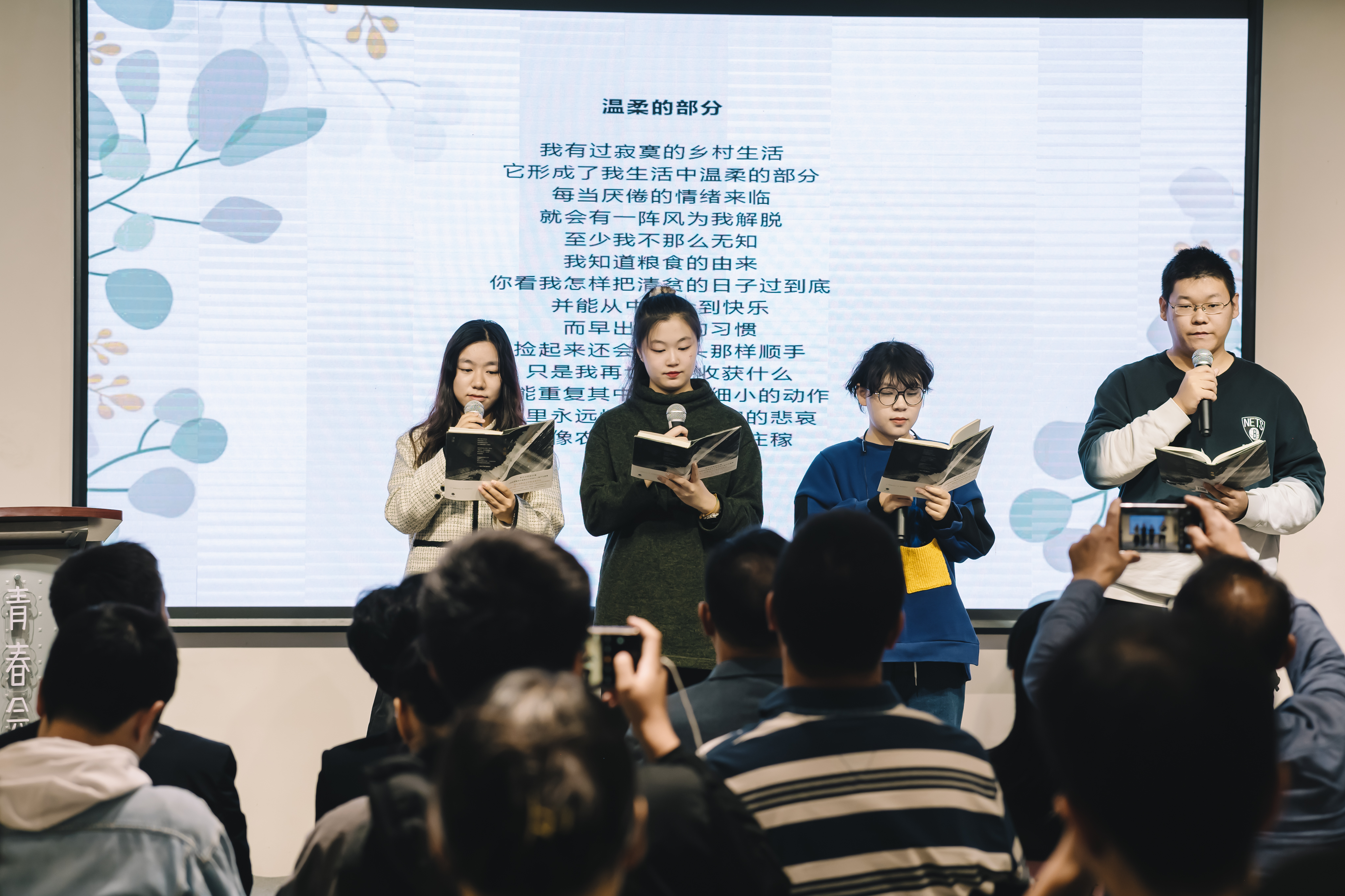 在活动现场,来自南京师范大学、南京审计大学、南京理工大学、南京艺术学院、东南大学成贤学院的年轻学子先后朗诵了韩东的诗歌。《离去》《藏区行》《温柔的部分》《我因此爱你》……他们所朗诵的诗篇皆由他们自己选择。