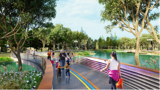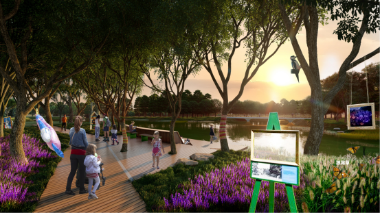 公园将凭借良好的滨水视野和茂密的森林资源,打造以水滨丛林探索为特色的文化地带,为市民提供丰富的亲水活动空间。