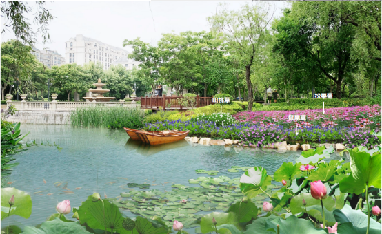 依托现有的欧式花园,打造高端海派游园场地,将现状运动场、儿童活动场地保留提升,着重梳理水生态及滨水空间,为周边社区居民提供优质的亲子体验场所。