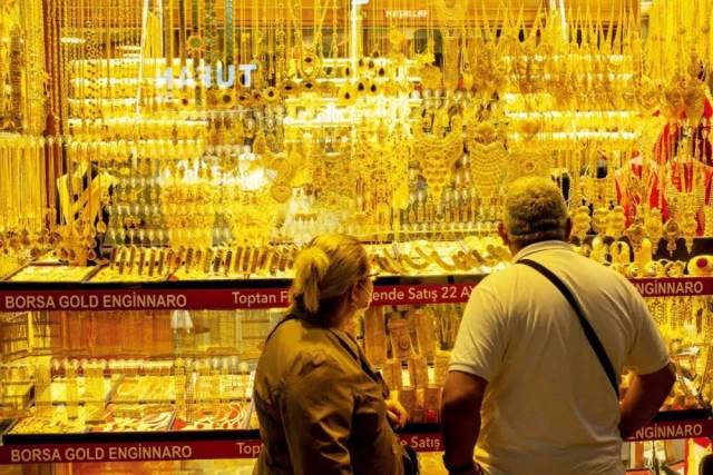 5月5日,土耳其伊斯坦布尔一家商店内出售的黄金饰品。图/视觉中国