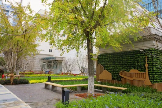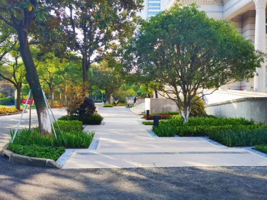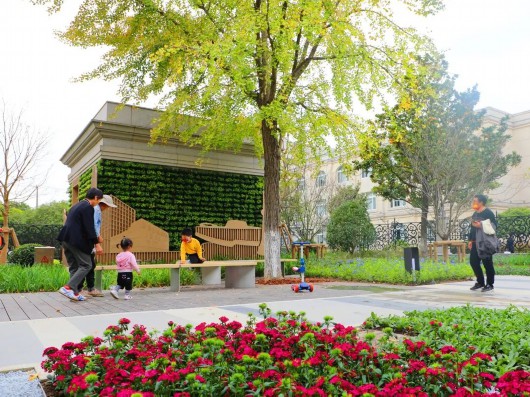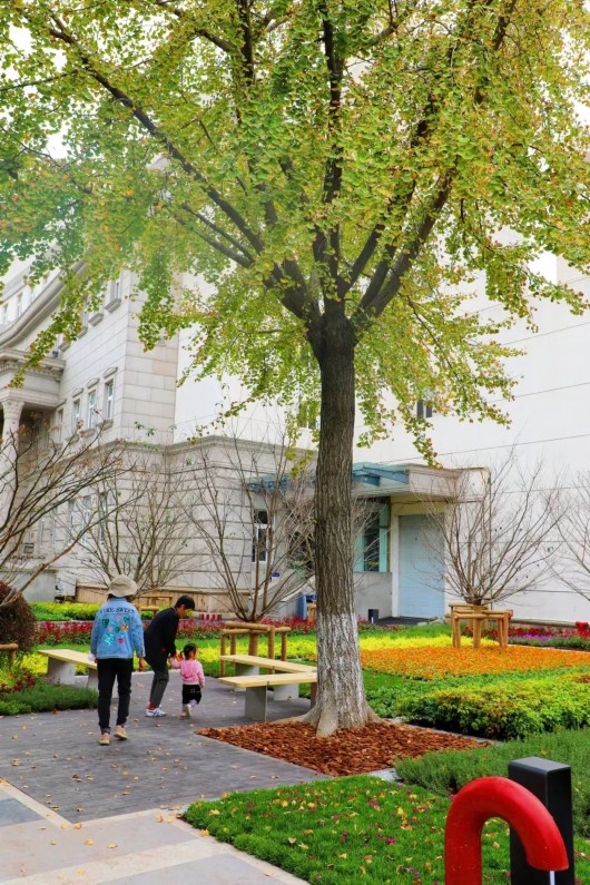 共享微公园改造面积1302平方米,保留了现状长势较好的银杏、广玉兰等树木,并围绕其进行景观布置,现场还设置了不少休闲长椅,方便市民休憩。此外,单位庭院绿化与明珠广场城市绿地无缝衔接,提升了这片城市游园的品质和活力。