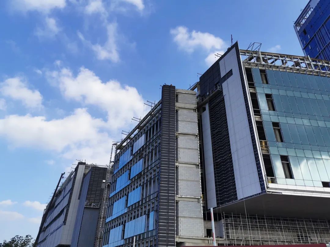 科创中心主阵地,宝山南大看过来。在南大智慧城的开发建设中,“地铁上盖”的南大“双子塔”项目是首发项目,它的建设也是日新月异,领跑了整个园区的建设进度。如今,“双子塔”项目已经完成了大部分外装修施工,深蓝色的幕墙玻璃外装熠熠生辉,俯瞰着南大智慧城一众雨后春笋般的建设项目。