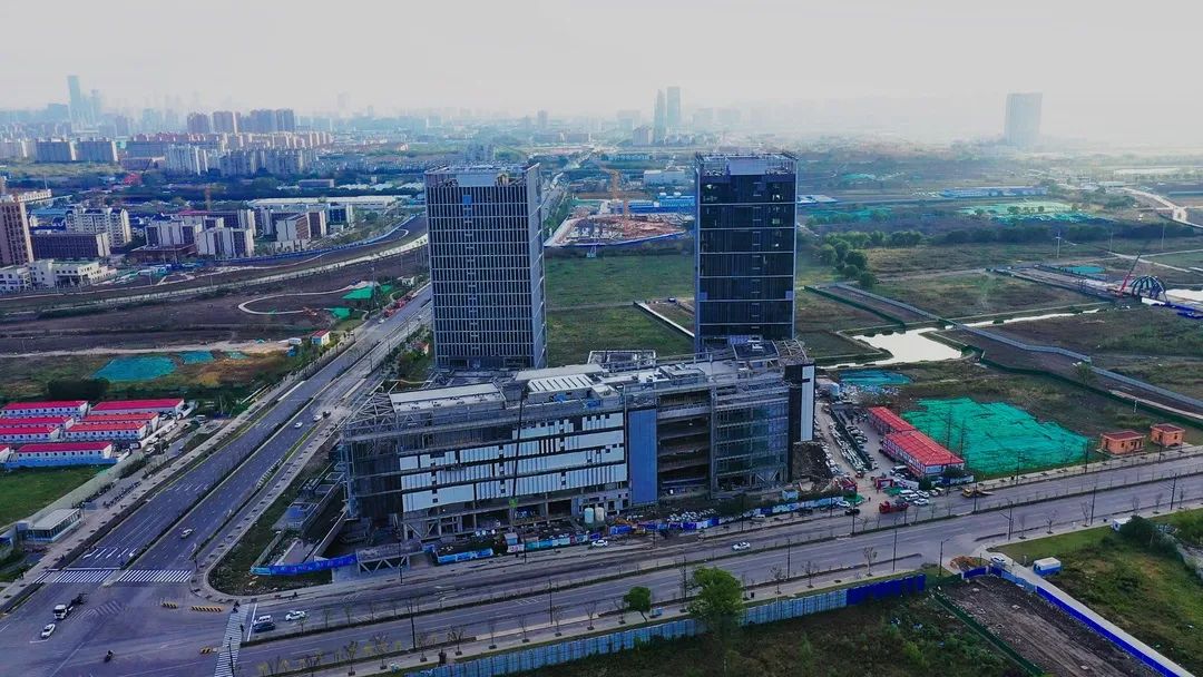 作为宝山“北转型”的重要载体,南大智慧城的建设正在如火如荼地进行中。其中,“双子塔”是南大智慧城的首发项目之一,在2021年年底完成了封顶之后,今年在机电安装和外部装修方面又获得重大进展,目前双子塔的外装已经接近完成,大楼的颜值也显著提升了。