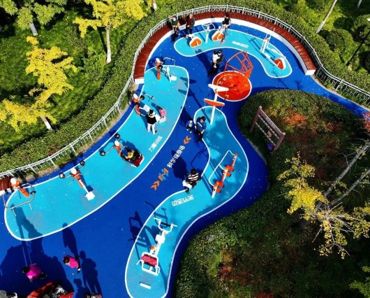 新型科学健身场围绕健身核心需求,打造集热身伸展、有氧运动、力量训练至少科学健身三要素的市民益智健身苑点。