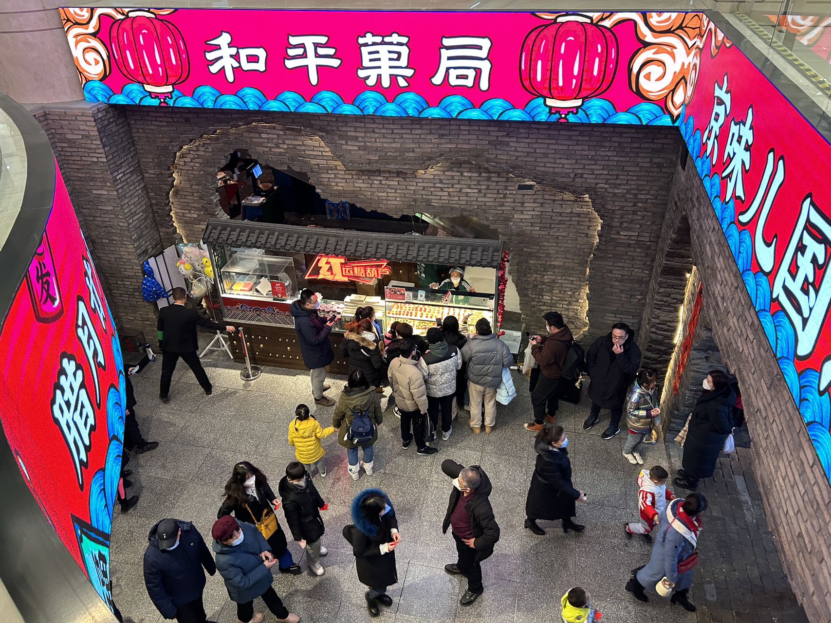 春节假期的北京王府井步行街里来自祖国各地的游客川流不息,各大商业体里人头攒动,下午三、四点钟餐饮店外依然是众多排队等待就餐的人们,京味文化体验区、儿童游戏区更是限流通行确保人们的安全。久违的过年人流又回来了,众多商家生意火爆,过年的热闹场景随处可见。