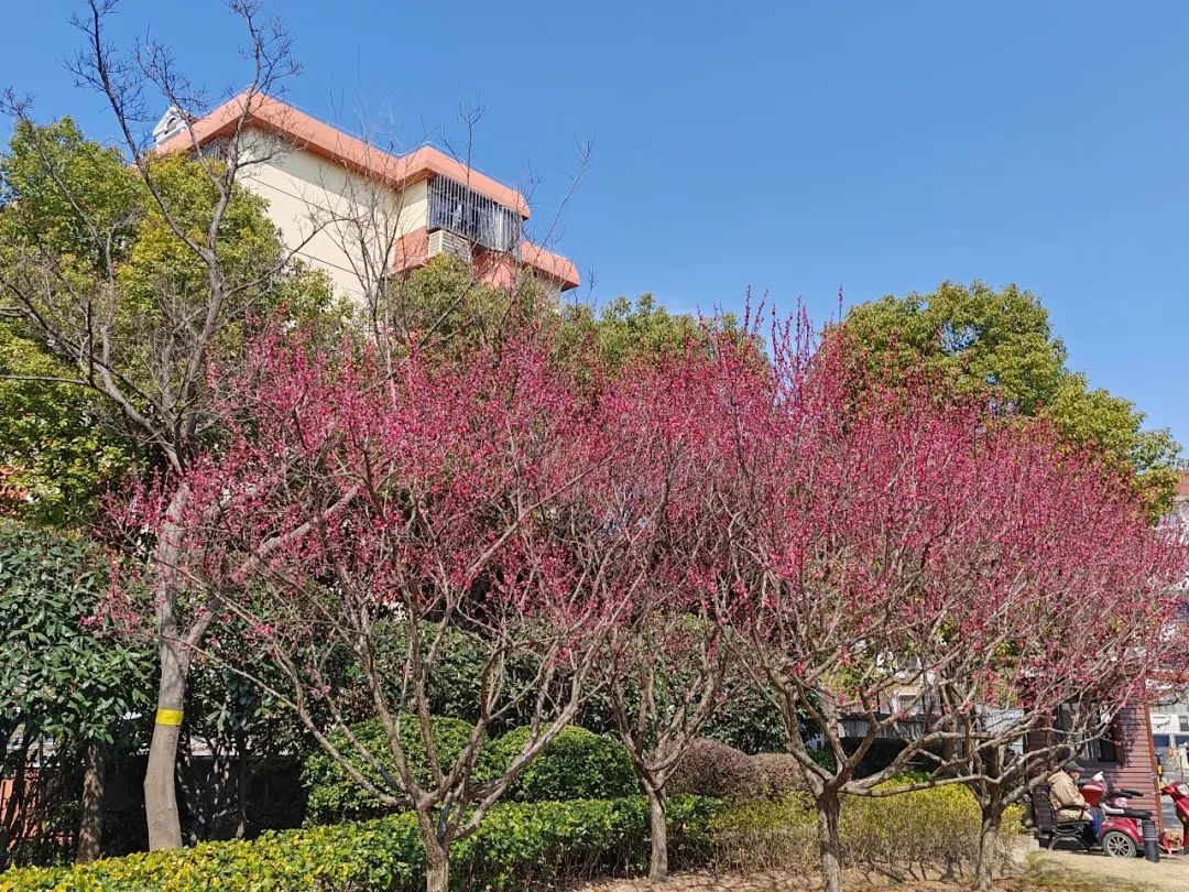 除了清风园,眼下长宁还有哈密公园可以赏梅。公园虽小,但是红梅、粉梅种植十多棵,是长宁区成片赏梅的好去处。