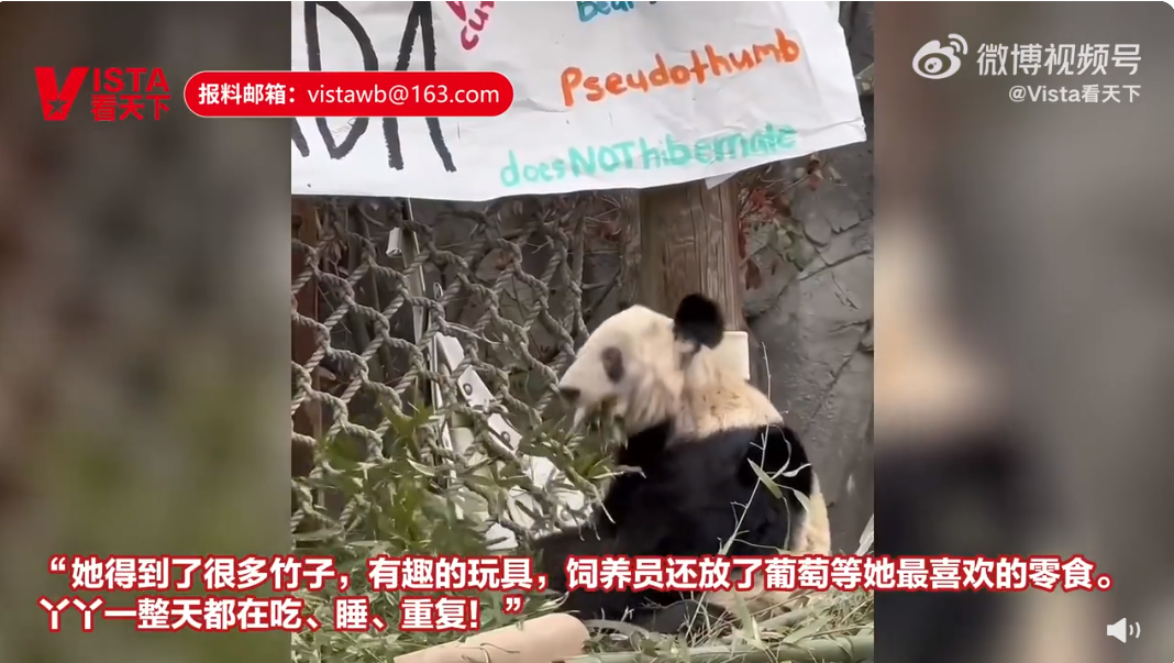 孟菲斯动物园分享了丫丫最新视频并配文:“今天我们和可爱的丫丫一起庆祝国家熊猫日!她得到了很多竹子,有趣的玩具,饲养员还放了葡萄等她最喜欢的零食,丫丫一整天都在吃、睡、重复!”