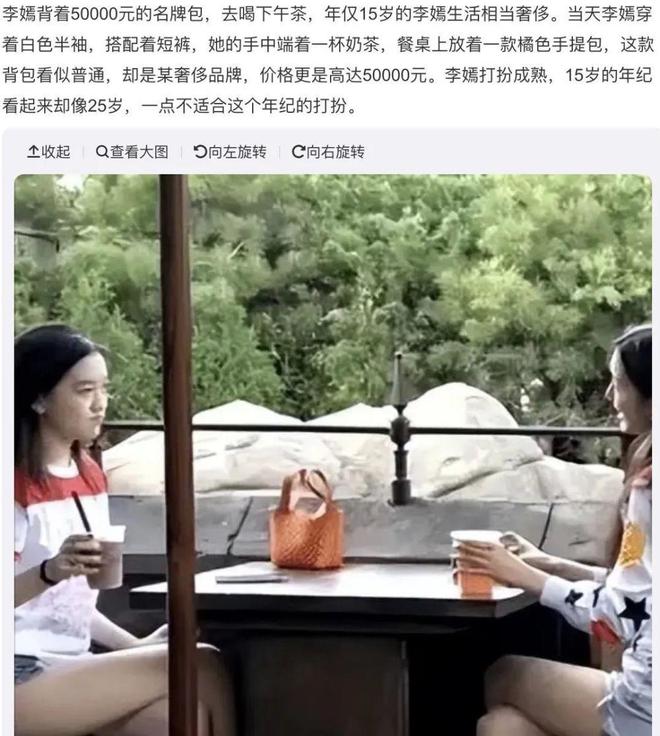 李嫣曾被网友偶遇,桌子上放着一个橙色包包,有说2万的,也有说5万的,总之都比王菲的贵出不少。