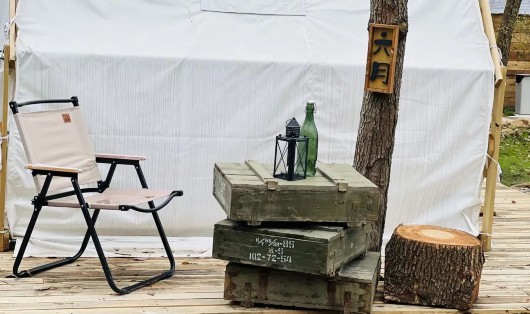 敏敏的营地总占地面积约30亩。项目包含:夕阳观景台、露营基地、亲子采摘、林间儿童乐园、绕景小水溪、真人CS、竞技射箭、树林市集、咖啡屋、帐篷聚会、草地影院、舞台会场、垂钓、露天氧气瑜伽、自助烧烤、围炉煮茶、本地农家菜、特色烤全羊、碳木比萨、篱舍、迷你动物园、种子图书馆等。