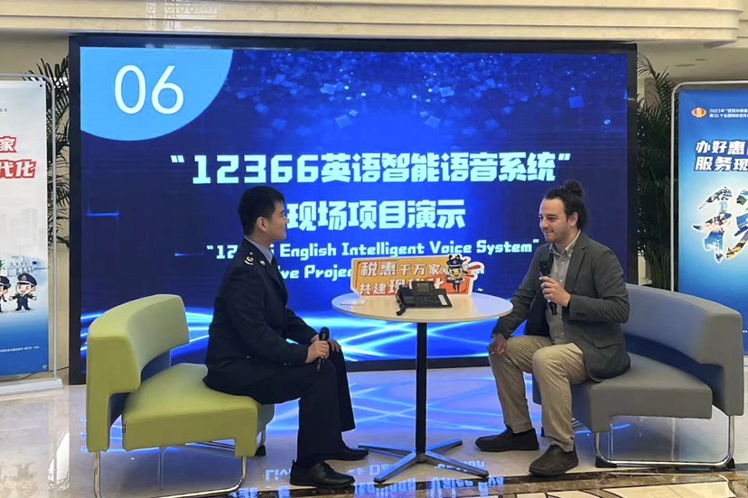 在现场演示环节,来自美国的上海日报责任编辑Alex与智能语音系统进行了英语咨询问答,良好的涉税英语互动体验让Alex竖起大拇指:“以往通过双语人工坐席了解中国的税收政策,现在常见问题也可以通过12366英语智能语音随时随地自助咨询了!”