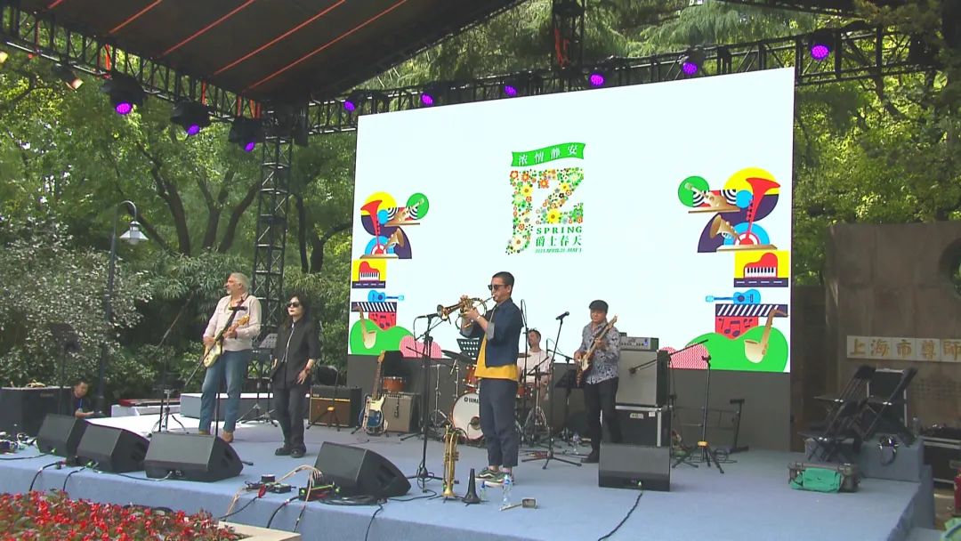 4月30日,2023“浓情静安·爵士春天”音乐节“爵士公园”首日演出在静安公园大草坪如约而至。