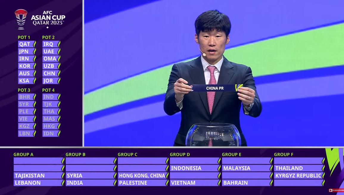 亚洲杯抽签揭晓,国足小组赛对阵卡塔尔、黎巴嫩、塔吉克斯坦