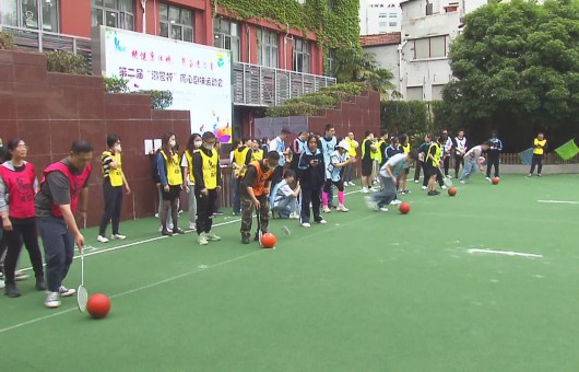 羽毛球拍赶猪接力、两人三足接力……这个趣味运动会举行→