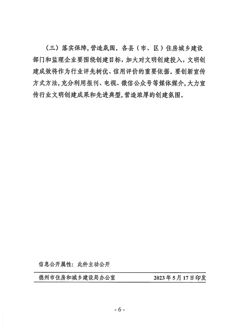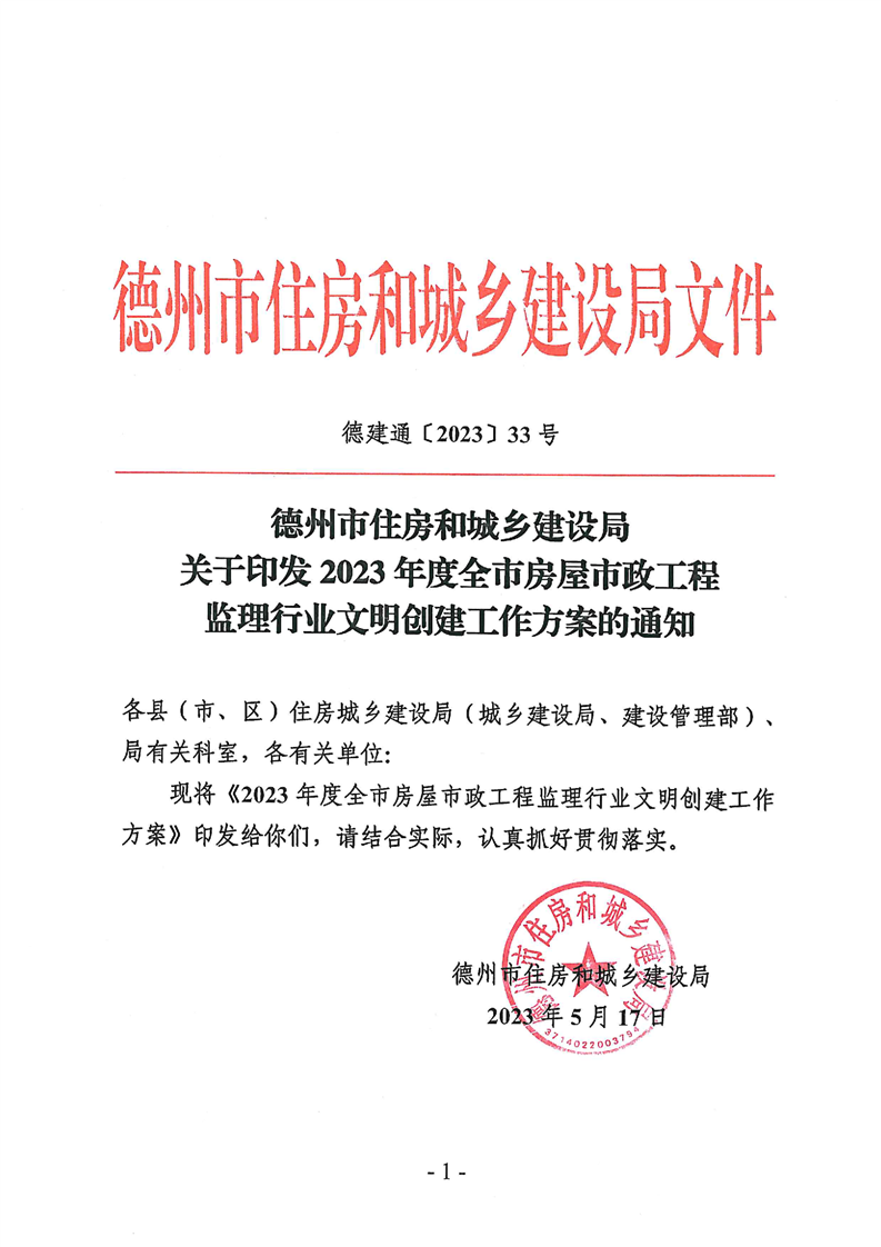 山东省德州市住房和城乡建设局关于印发2023年度全市房屋市政工程监理行业文明创建工作方案的通知