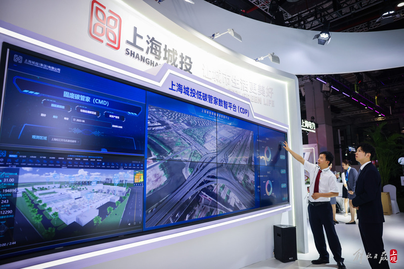 上海城投展示其智慧水务、低碳管家数智平台等内容。