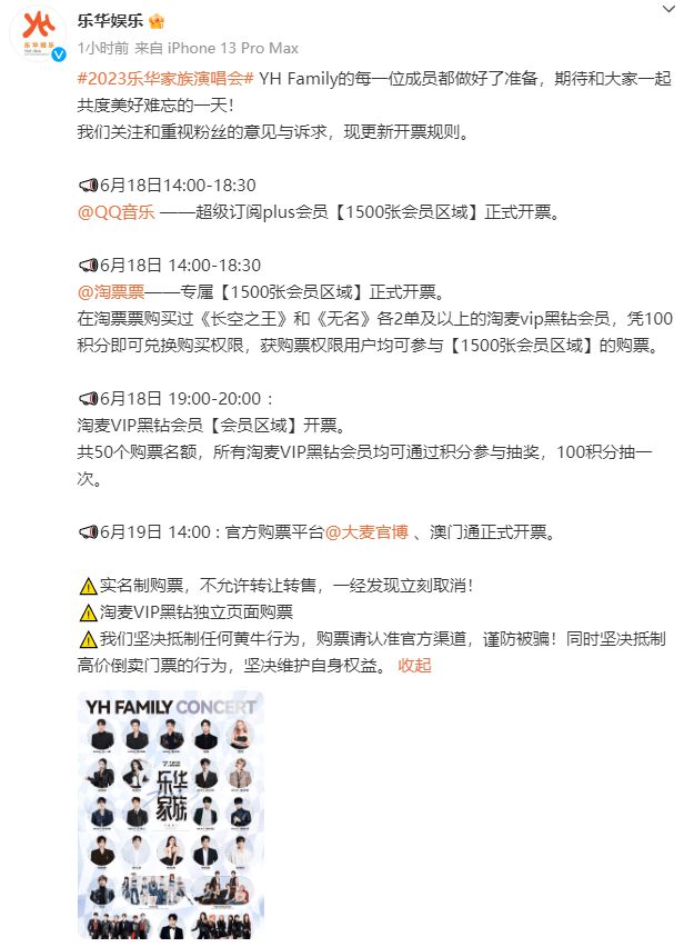 此前,乐华娱乐公布2023家族演唱会的购票方式时,就引起了不小的争议!