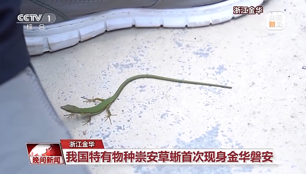 这两天,一只通体绿色的蜥蜴现身浙江金华磐安县,经鉴定系中国特有珍稀濒危物种崇安草蜥。与其他蜥蜴不同的是,这种蜥蜴外观奇特,通体翠绿,只有肚子呈白色,经常与环境融为一体,很难被外界发现。