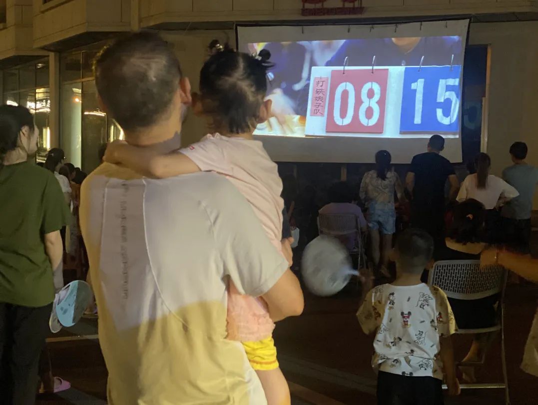 居民王先生带着宝宝一起来看电影,他说:“记得小时候,小伙伴招呼一下,我们就马上搬好椅子来看电影了。今天也是带小朋友过来体验下我们小时候的快乐!”