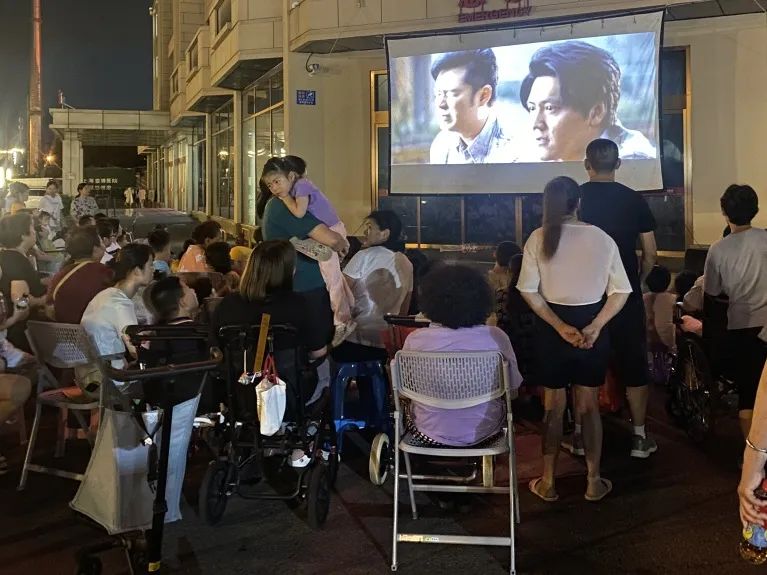“如今生活水平提高了,虽然每家每户都有电视,手机上也可以看电影,但我们仍然十分怀念小时候坐在一起看露天电影的感觉!现在社区将电影送到家门口,吃完晚饭大家就搬来凳子坐在这里一起看电影,丰富了我们老年人的生活!”家住欣悦华庭的李大爷感慨道。