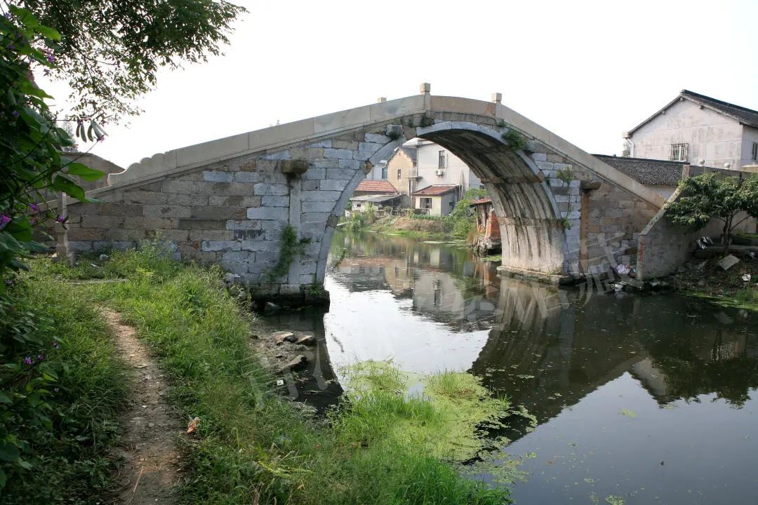 香花桥位于徐泾镇蟠龙村老街中心,南北向,跨墅泾港,俗称“蟠龙桥”。元至元庚辰年(1340年)始建,清乾隆二十年(1755年)重修,五十三年(1788年)重建。该桥为单孔石拱桥,花岗石材质。桥长15.6米,宽3.35米,高3.8米。南北两堍各有15级石阶,南堍尚存楹联“辉腾宝地彩虹高”,仍清晰可认。
