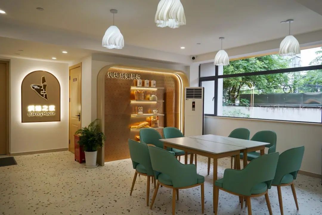 除此之外,针对大家提出的活动需求,食堂二楼单独开辟了烘焙区域,用于在非高峰就餐时段开展厨艺教学、老年健康餐制作、中式、西式面点烘焙等特色活动,丰富居民、白领的日常生活。