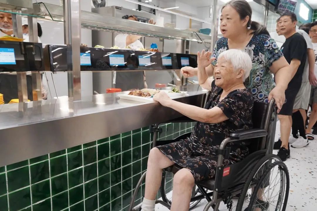 “侬让我自己点菜噢。”88岁林阿婆坐在轮椅上,由女儿推到了取餐处。听着工作人员的推荐,林阿婆很快点好了五道菜,糟溜鱼片、炒豆角、盐焗鸡腿……“都是我喜欢吃的!”心满意足的林阿婆乐得眉开眼笑。