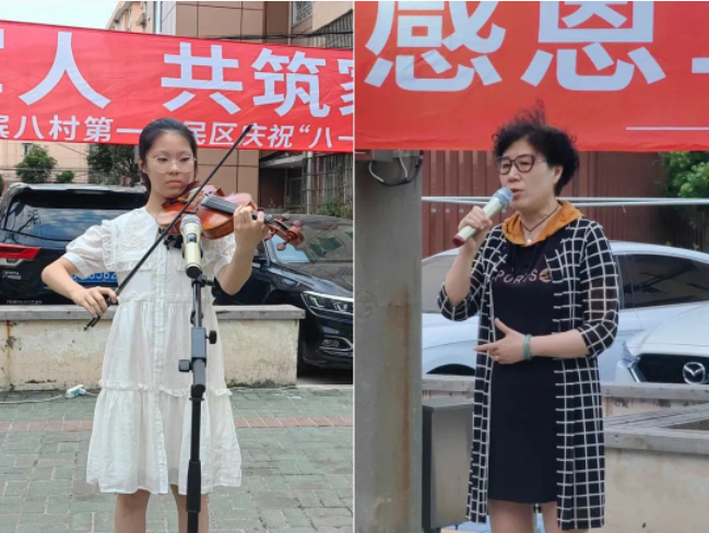 海滨八村第一居民区举办“感恩军人、共筑家国梦”庆“八一”纳凉晚会,社区居民自主自发报名参演节目,在舞台上一展身手。
