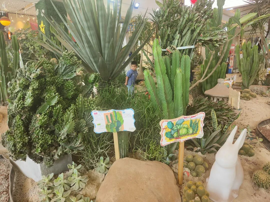 走进商场正门,“沙生植物展”映入眼帘,金冠、仙人柱、虎皮兰,葱郁绿植,相互拥簇,泥土的独特香味四处弥漫,走过一条石子路,便进入了“FUNCITY”的空间。内敛而别具高级感的场景切换,吸引了不少顾客驻足欣赏,反复穿梭。“一抹清凉绿意把我的心从户外的燥热中解放出来,仿佛就在一瞬之间,很是神奇。”游客陈先生说。记者观察到,沙生植物展的原生态还原也深得小朋友喜爱。“小孩对各种植物介绍充满好奇,能够通过带她来植物展亲近自然,探索自然。”一位家长说道。