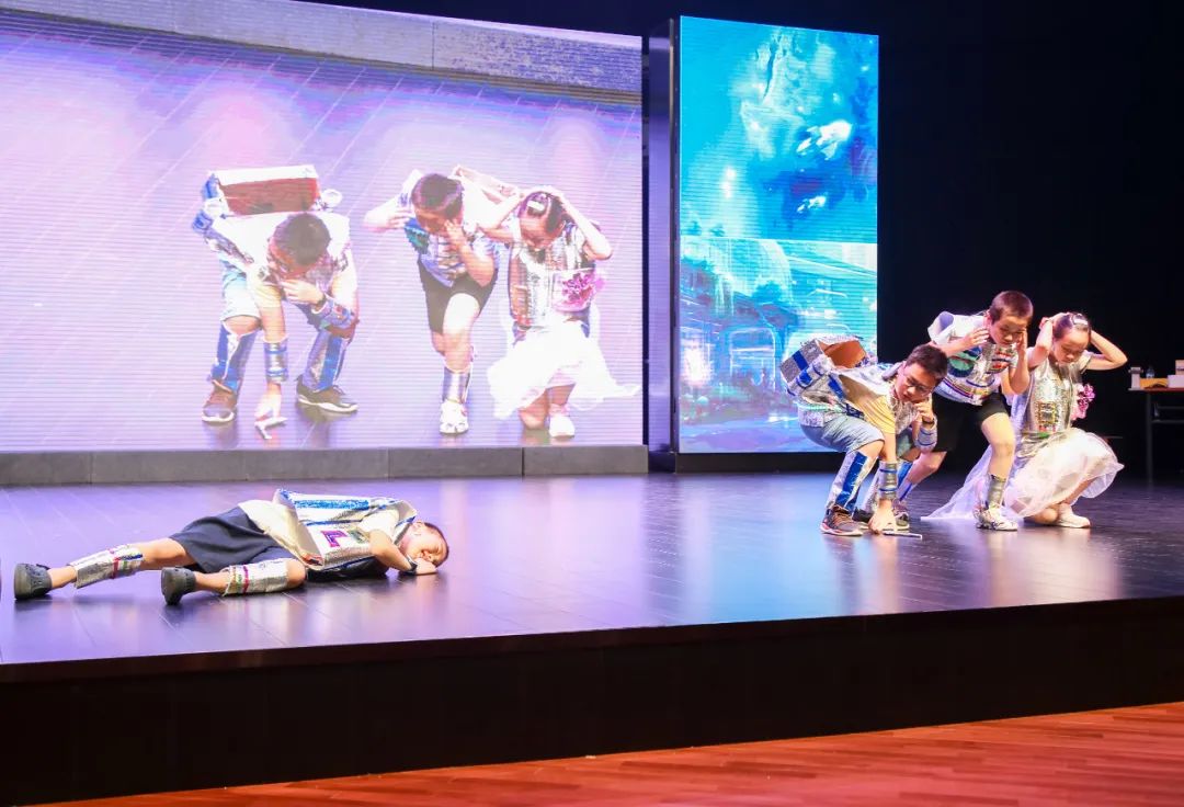 结营汇演以科幻电影《流浪地球》为背景,围绕学员们面对太阳即将毁灭的绝境,在“流浪地球”计划中攻坚克难、建立家园的故事展开,将8个实践课程的学习成果全部串联其中。