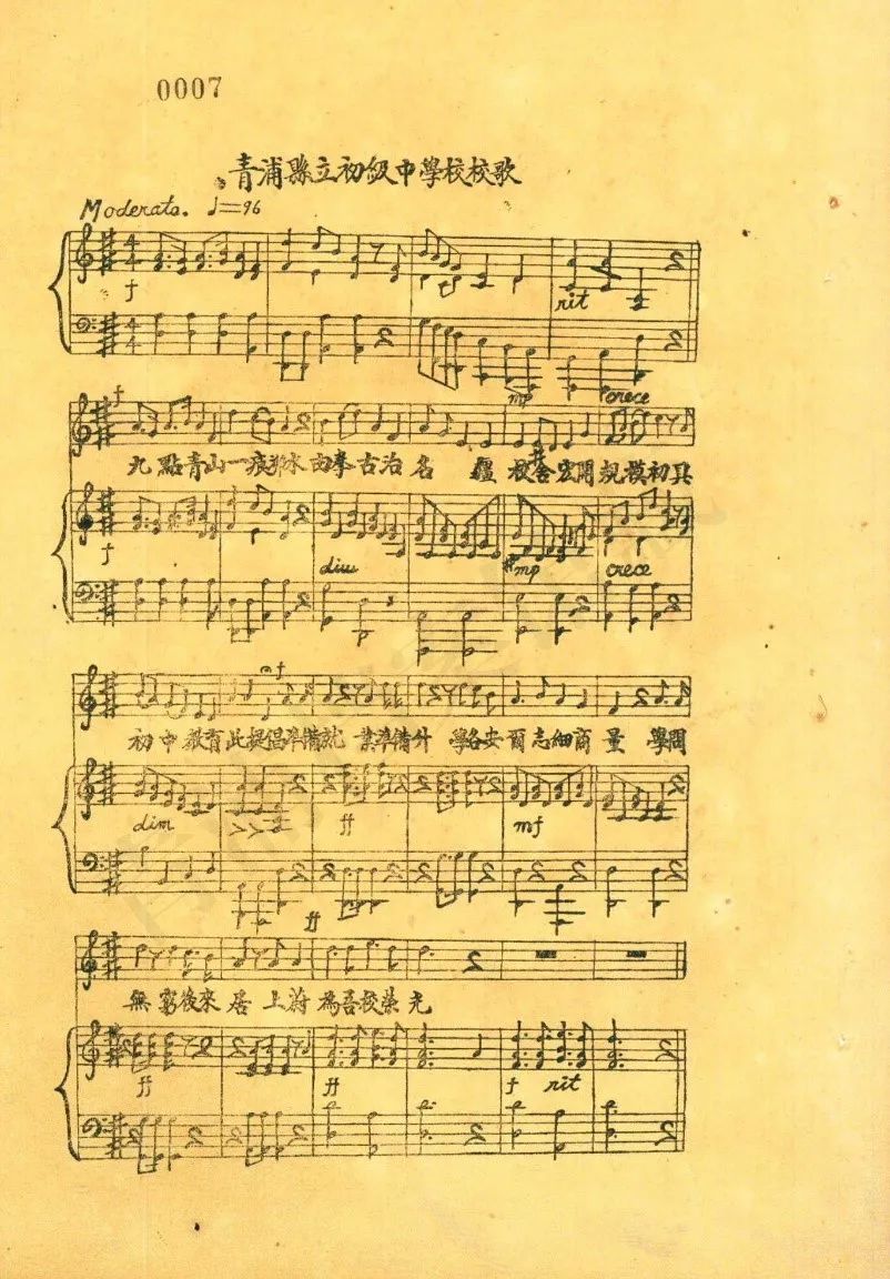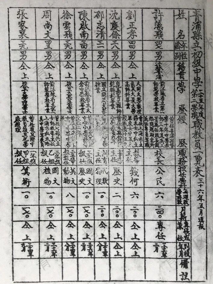 抗战胜利后,“青浦县立初级中学”复校开学。课程设置大体如战前,算学分设算术(初一)、代数(初二)、几何和三角(初三),动植物并为博物,劳作、图画并为美工。