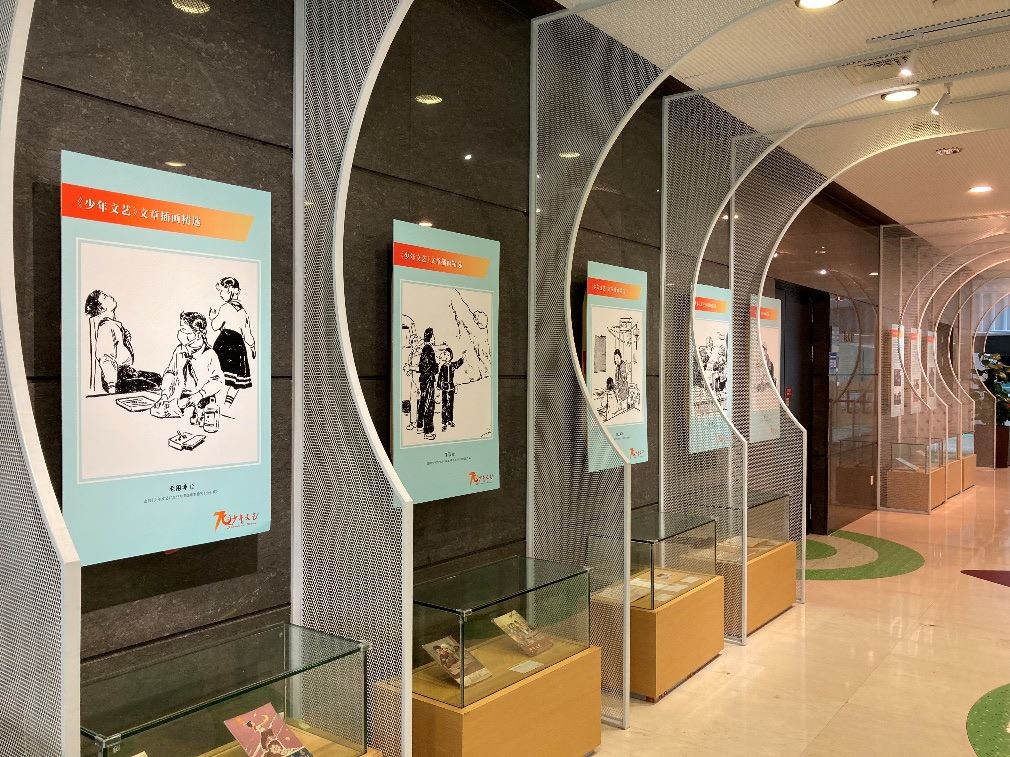在浦东图书馆二楼,《少年文艺》创刊七十周年纪念特展通过历史照片、名人手迹、旧杂志等183件展品,其中重点展出了70年来从这里走出的一辈又一辈文学精锐,也有首次对外公开的珍贵手稿原件、艺术插画,为读者呈现一幅生动鲜活的中国原创儿童文学画卷,引发几代读者和作家的共同回忆。